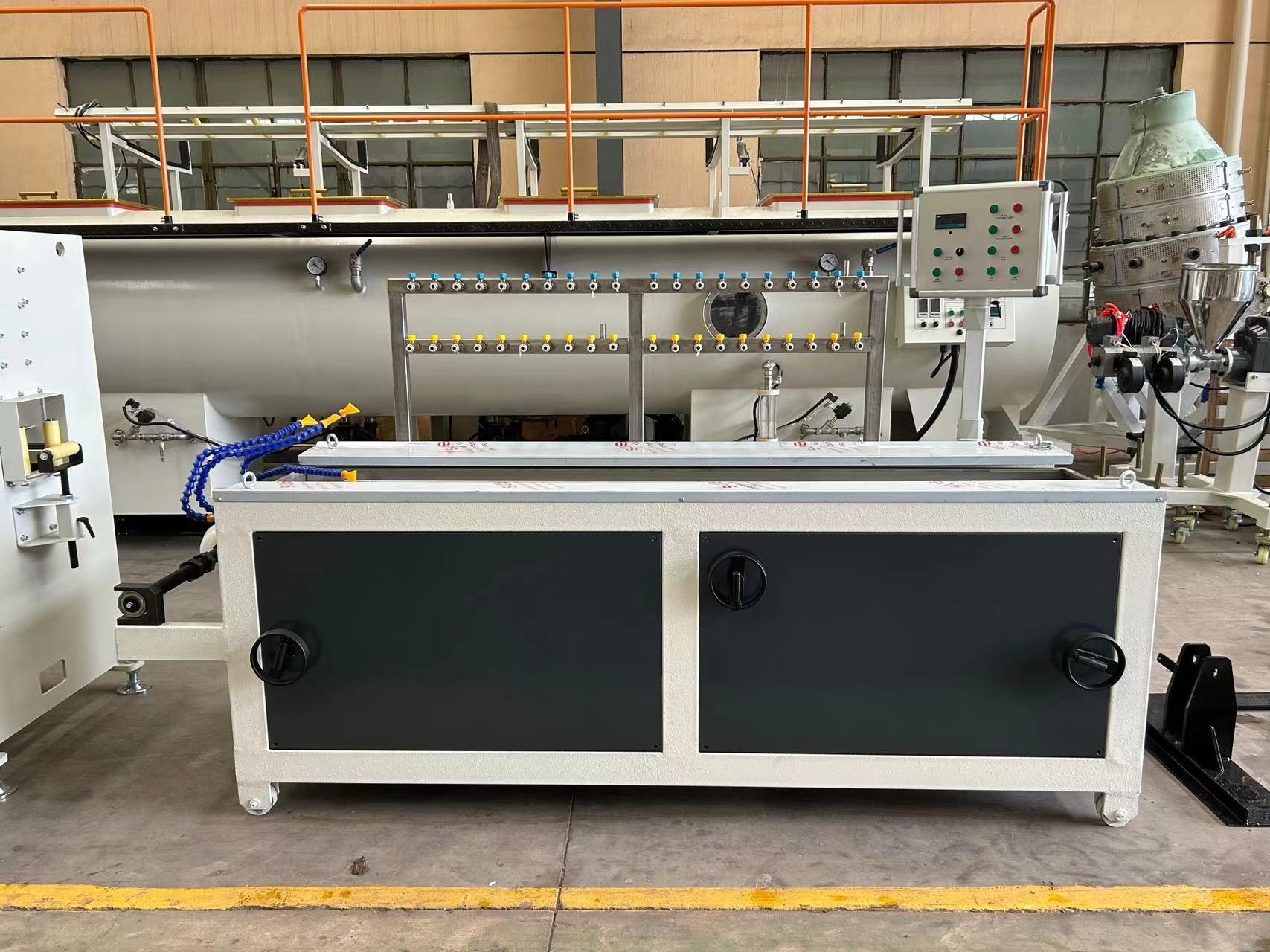 এই লাইনের প্রক্রিয়া প্রবাহ হল পিভিসি পাউডার + অ্যাডিটিভ ∙ মিশ্রণ ∙ উপাদান ফিডার ∙ টুইন স্ক্রু এক্সট্রুডার ∙ ছাঁচ এবং ক্যালিব্রেটর ∙ ভ্যাকুয়াম গঠনের টেবিল ∙ টান-আউট মেশিন ∙ কাটিং মেশিন ∙ ডিসচার্জ র্যাক।