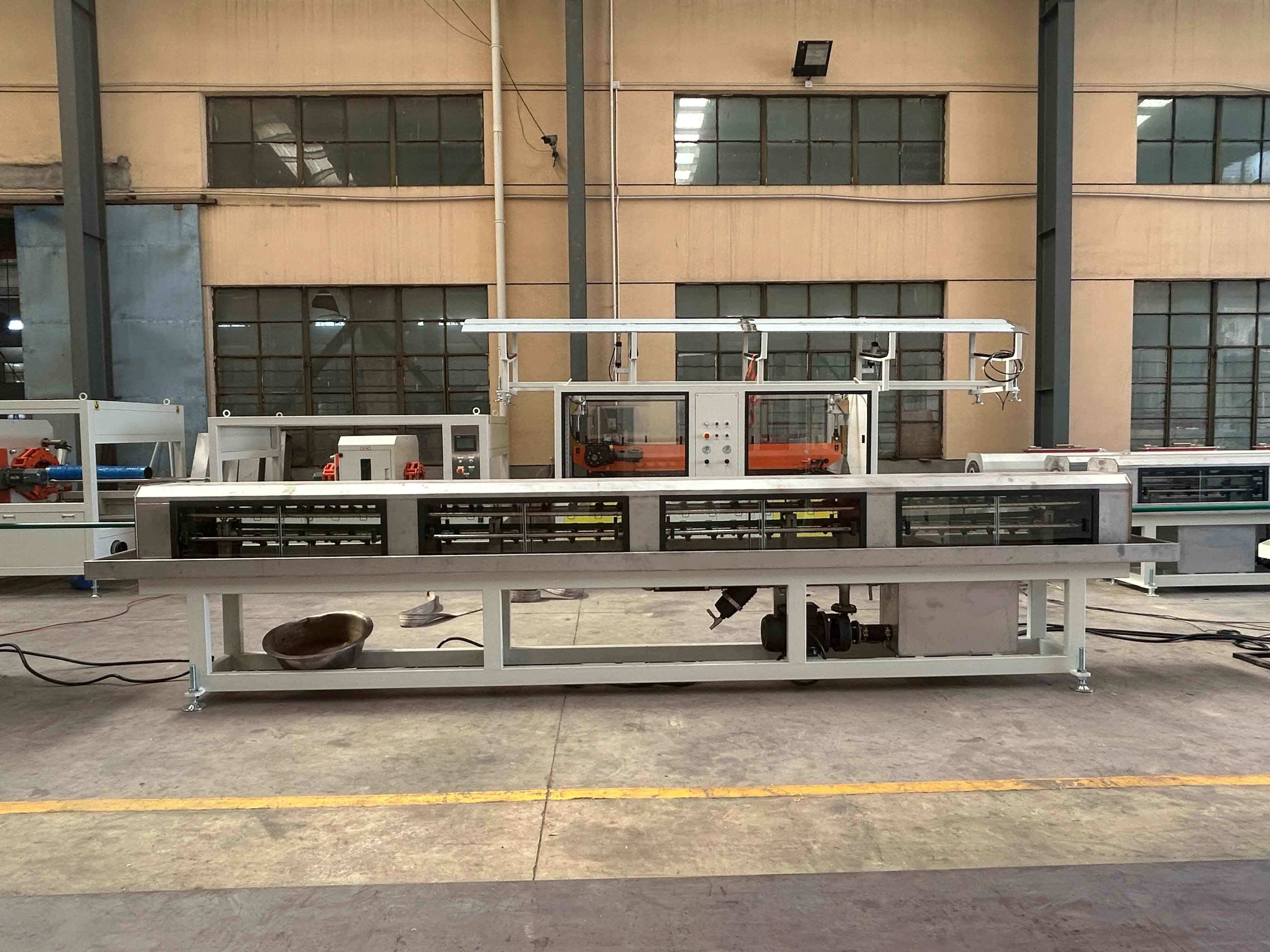 গলিত প্লাস্টিক একটি ডাই হেডের মধ্য দিয়ে যায় পাইপ/প্রোফাইল তৈরি করতে, তারপর সুনির্দিষ্ট আকার এবং শীতল করার জন্য একটি ভ্যাকুয়াম ক্যালিব্রেশন ট্যাঙ্কে প্রবেশ করে।