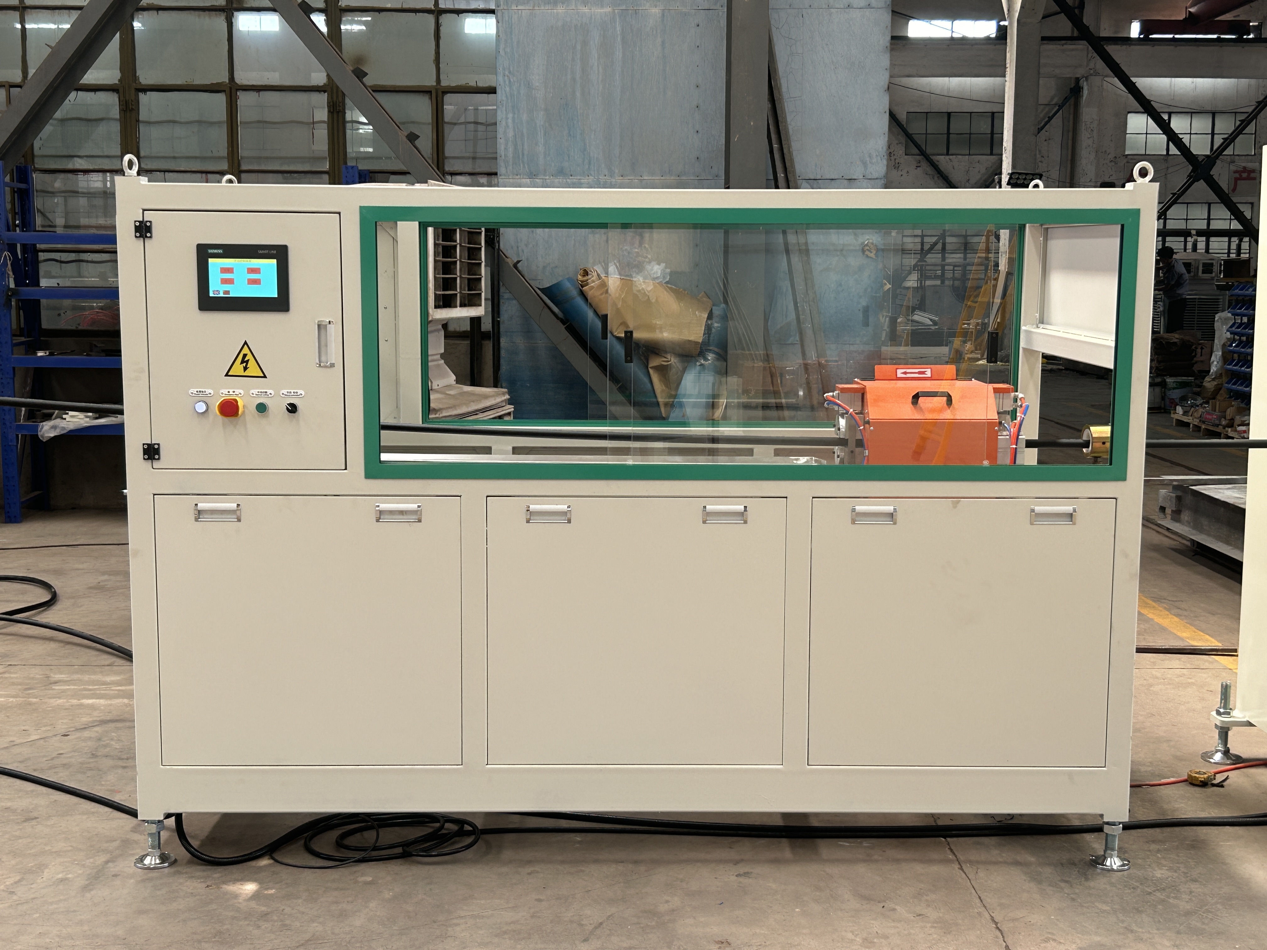 প্রোগ্রামেবল সিস্টেমের মাধ্যমে সম্পূর্ণ লাইন নিয়ন্ত্রণ যা সিঙ্ক্রোনাইজেশন এবং পরিচালনাযোগ্যতা বৃদ্ধি করে। সময় এবং জনবল বাঁচায় এবং ব্যাপক মেশিন পর্যবেক্ষণ প্রদান করে। চমৎকার তাপ প্রতিরোধ, অ্যান্টি-এজিং, ক্রাশ প্রতিরোধ, অ্যান্টি-ক্র্যাকিং এবং ক্রিপ প্রতিরোধ বৈশিষ্ট্যযুক্ত পাইপ তৈরি করে।