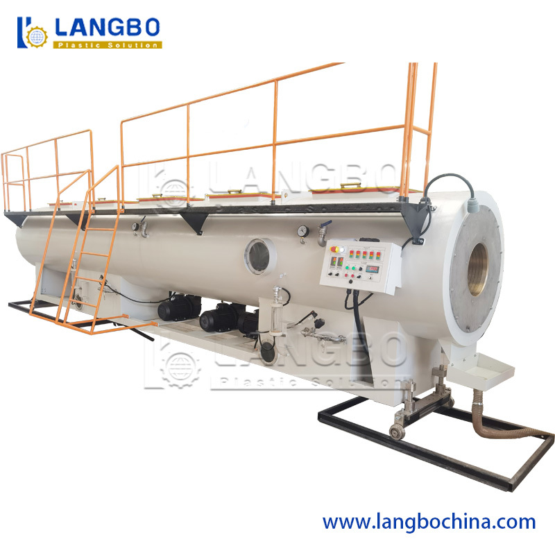 ভ্যাকুয়াম সাইজিং ট্যাঙ্ক: গরম পাইপ একটি ভ্যাকুয়াম ট্যাঙ্কে প্রবেশ করে তার বাইরের ব্যাস (OD) শক্ত করতে এবং মাত্রিক নির্ভুলতা নিশ্চিত করতে।