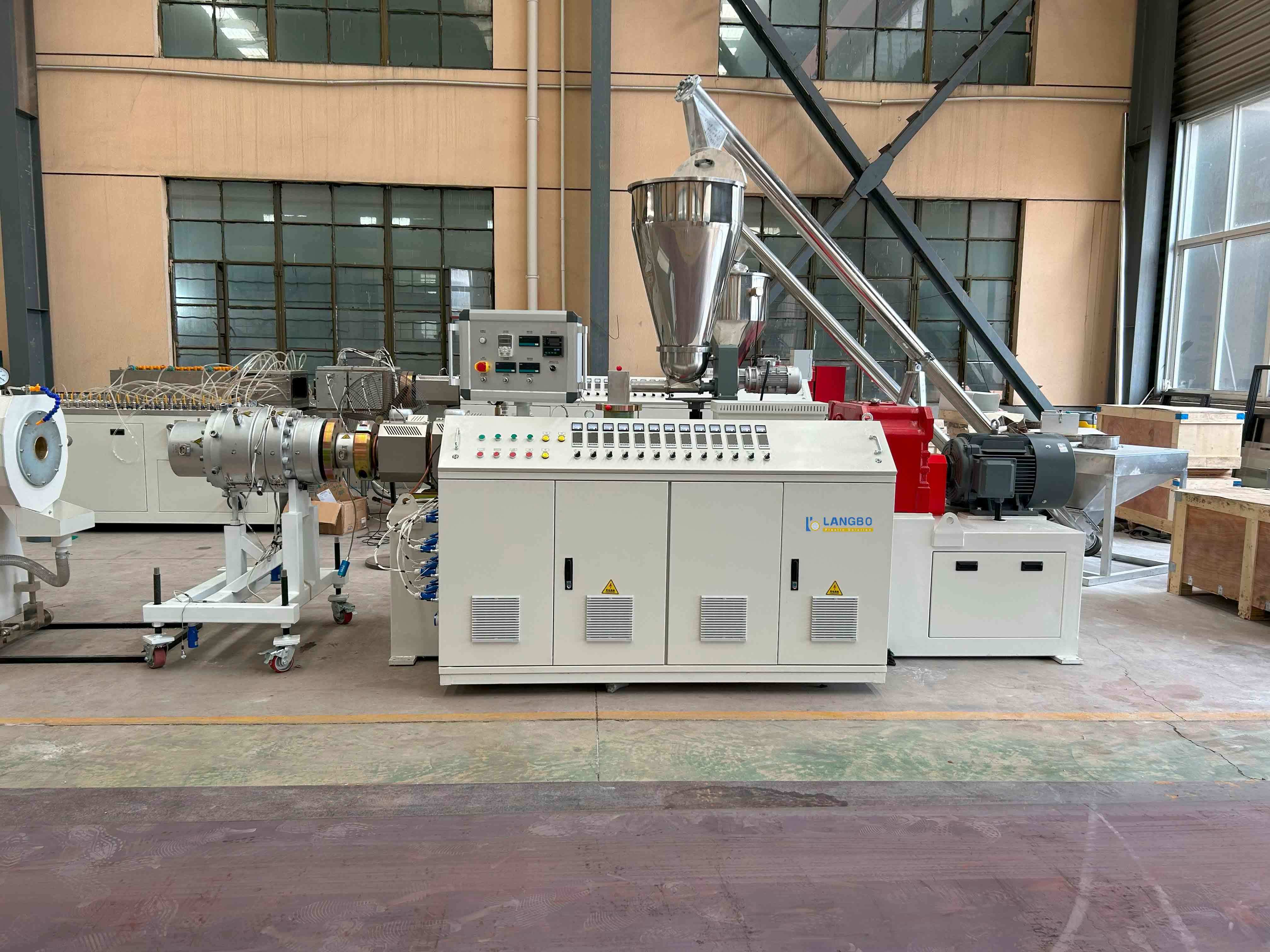 পিভিসি রেজিন, স্টেবিলাইজার, প্লাস্টিসাইজার এবং অ্যাডিটিভগুলি প্রি-মিক্সড করে এক্সট্রুডার হপারে সরবরাহ করা হয়।