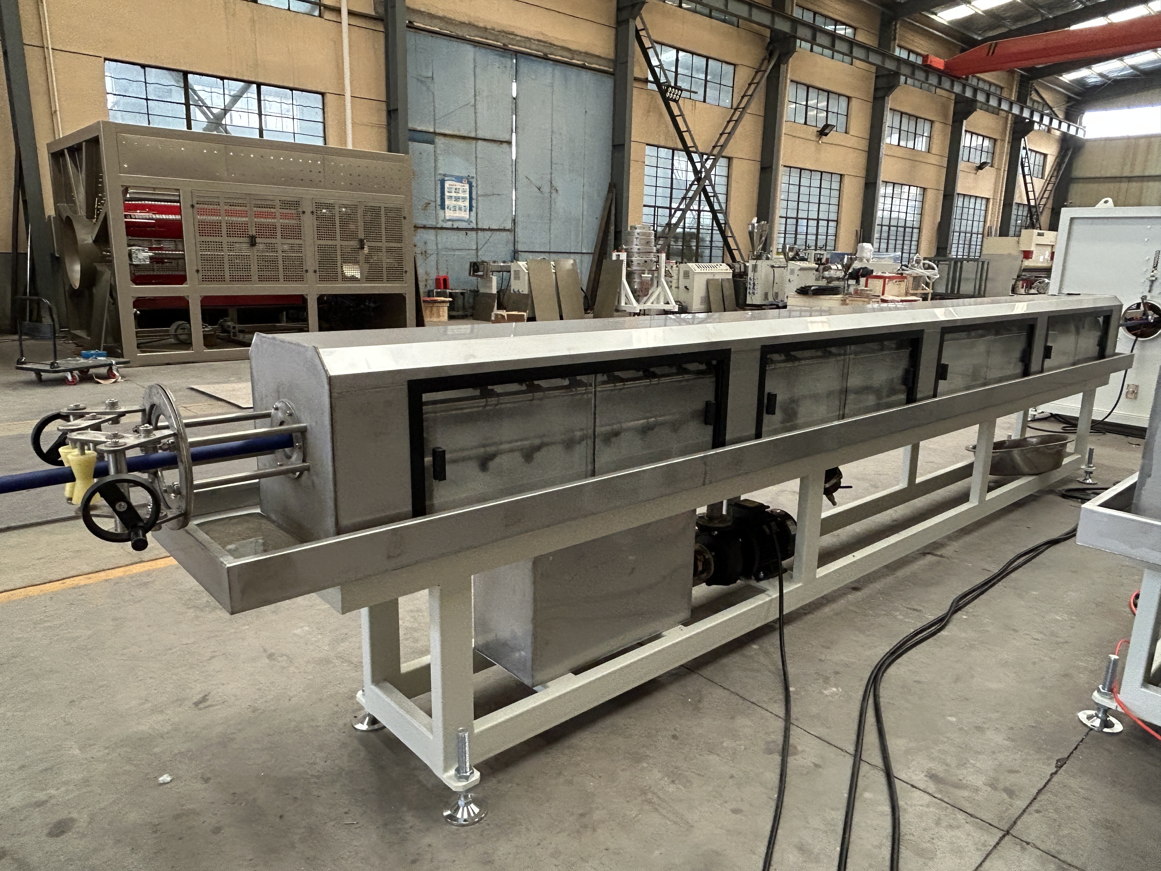 গলিত প্লাস্টিকটি পাইপ/প্রোফাইল গঠনের জন্য একটি ডাই হেডের মধ্য দিয়ে যায়, তারপরে সঠিক আকার এবং শীতল করার জন্য একটি ভ্যাকুয়াম ক্যালিব্রেশন ট্যাঙ্কে প্রবেশ করে।