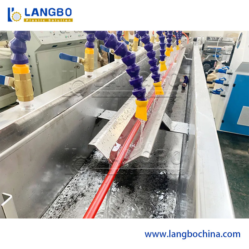 চার মিটার দীর্ঘ জলের ট্যাঙ্ক নিশ্চিত করে যে উৎপাদিত পাইপ ঠান্ডা জল স্প্রে করে ঠান্ডা এবং আকৃতির হয়।