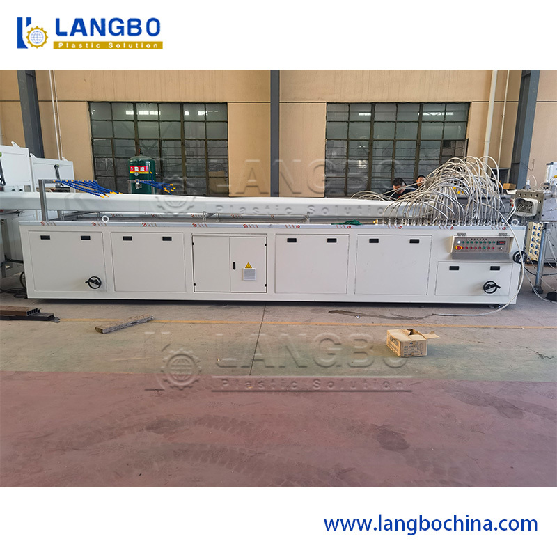 Calibration Table Constructed with stable steel frame and SUS 304 stainless steel body. Features multi-dimension position adjustment system with precisely arranged water pumps and vacuum calibrators for rapid shaping and cooling of PVC profiles.